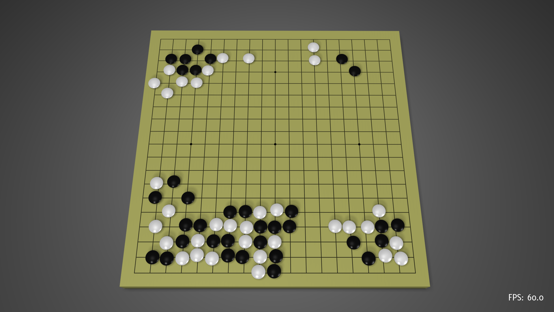 - extra controls: V (cycle shaders), N (toggle experimental text overlay), C (re-center board), O (animate board), X (toggle max fps gameloop)